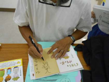 2年生の時に絵本の読み聞かせで子どもたちが大好きになった「ぐうたらと けちと ぷう」の作家である加瀬太郎さんをお招きしました。