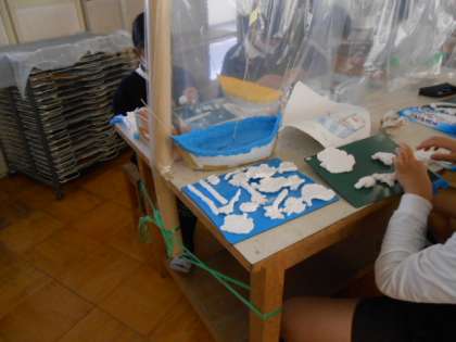 12月に行われる作品展に向けて、5年生が、工作の作品作りに取り組んでいます。