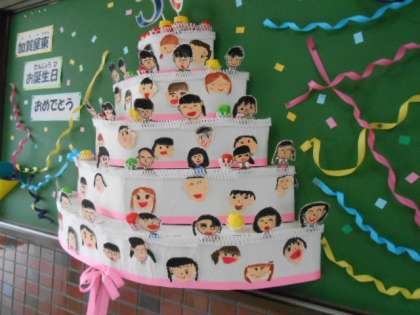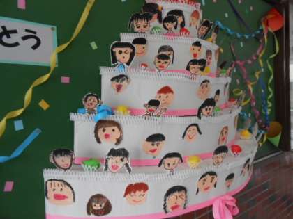 ケーキの周りには、みんなの顔がデコレーションされています。