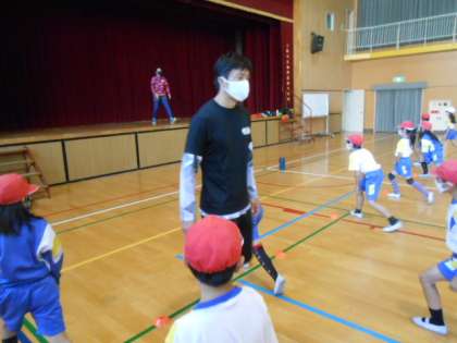 コーチとして、北京オリンピック、400mリレーメダリストの浅原 宜治コーチなどにお越しいただきました。(NHK for schoolの教育番組で出演されているので、子供達はみんな知っていました。)