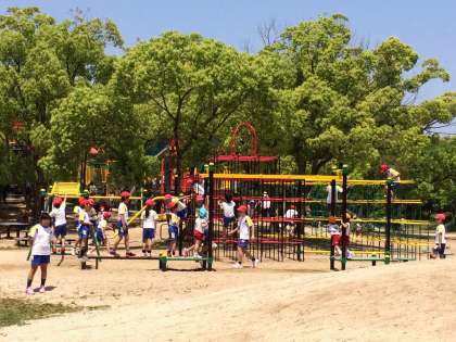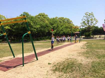 大きなジャングルジムでは、複雑な構造も何のその!という様子で、楽しく遊ぶことができました。ロープの遊具は、滑車が付いていて、端から端までターザンのように渡ることができます。