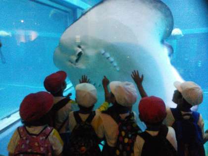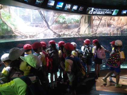 さて、2年生の子どもたちは、混雑している館内でも列を守りながら、水槽の向こう側の生き物たちを歓声を挙げながら覗き込んでいました。