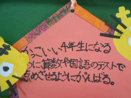 学校での勉強のこと、習い事のこと、毎日の生活のこと等、それぞれ今年一年頑張りたいことを文字にしてくれました。