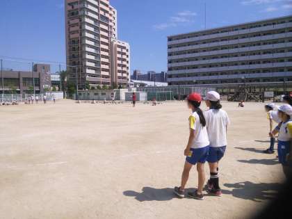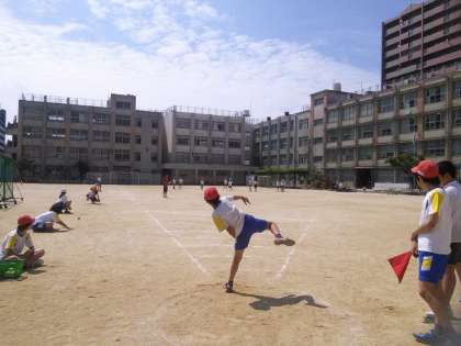 よく晴れた空に向かって、白いボールがぐ〜んと伸びて飛んでいきます。