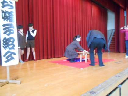 本日は、そのための事前ワークショップとして、ゲストティーチャーである芸人さんに、漫才や落語についてのお話を聞かせていただいたり、寄席で使われる道具の説明をしていただいたりしました。