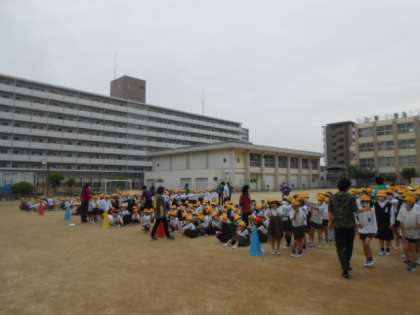 その後、校内放送を合図に、運動場まで避難しました。