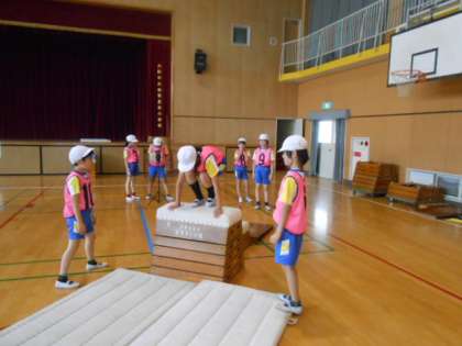 「とびリンピック!〜目指せとび箱名人への道〜」というタイトルをつけて、「台上前転」「かかえこみ跳び」にチャレンジしました。