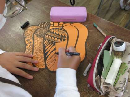5年生が、図画工作科で「ゼンタングル」アートに挑戦しました。