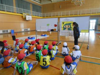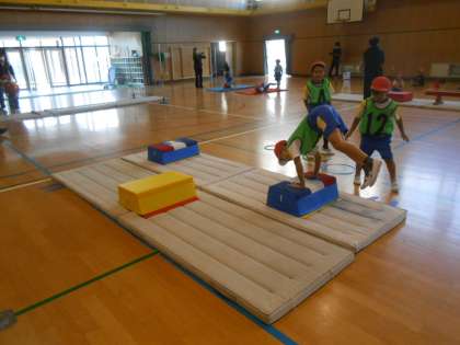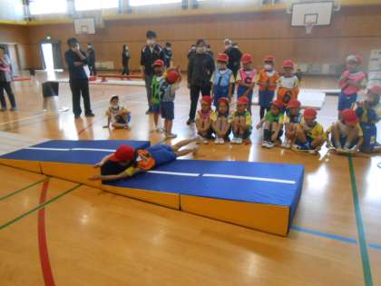 とても楽しそうに、マットの上を転がったり、ブリッジをしたりして活動(運動遊び)をしていました。