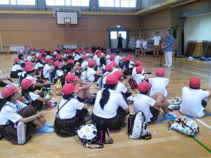 たくさんの保護者の方のお迎えがある中、日焼けして、少し疲れた様子でバスから降りた子どもたちでしたが。
