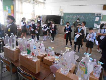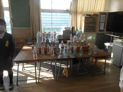「ターゲットゲーム」…得点の書いてあるペットボールに、球を投げて倒します。