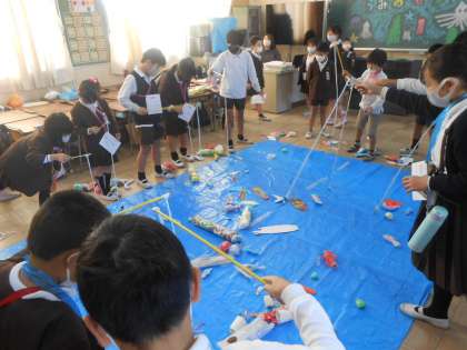 「うみの せかい」…2年生がつくった海の生き物を、竿で釣る釣りゲームです。