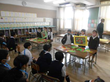 お題として出されたサラダの絵を見て、その後、1年生がつくったサラダの具材を