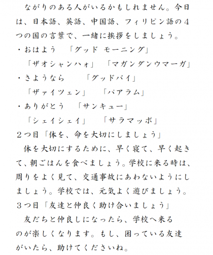 あいにくの雨でしたが、元気な新1年生を学校に迎え、入学式を挙行しました。残念ながら、お休みの子どももいましたが、4月10日には、みんなが登校できればいいなと思います。新1年生の皆さん、4月10日の月曜日に、学校で逢いましょう!