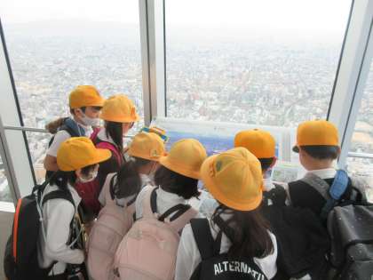 見学中の子どもたちは、展望台から見えた大阪市の様子をワークシートにメモするなど、意欲的に学習することができました。