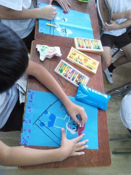 当日は、北校舎から講堂に向かって、万国旗がたなびくように、子どもたちの子どもたちによる子どもたちのための応援旗が、上空にたなびきます。