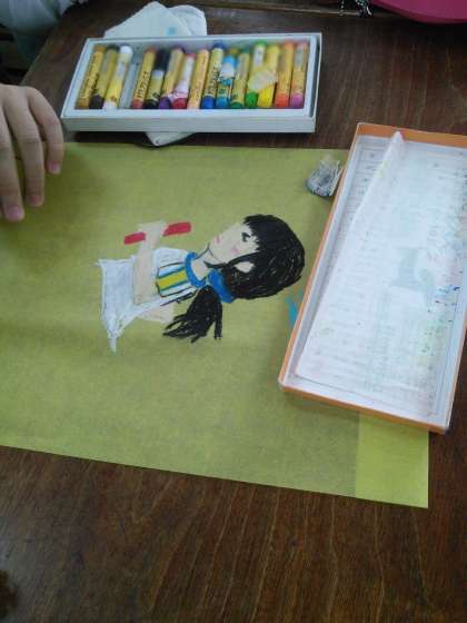 写真は、その旗を作成しているところ・・・。