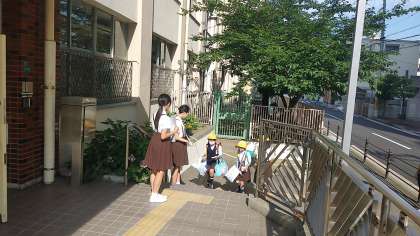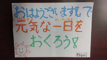 運営委員会の児童の皆さんが、正門付近で登校する児童の皆さんに向けて、元気よく「おはようございます」と挨拶をしてくれていました。登校する児童の皆さんも、「おはようございます」と気持ち良く挨拶を返す姿が見られました。