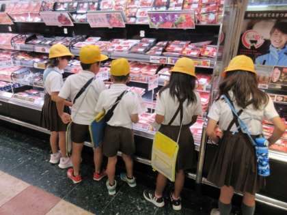9月22日の金曜日に、3年生は、社会見学でスーパーマーケットに行ってきました。売り場の様子を見てワークシートにまとめたり、普段は入れないバックヤードにも入れてもらったりして、よい体験ができました。