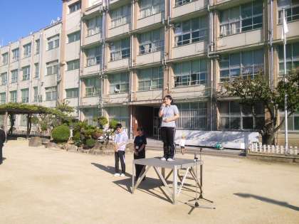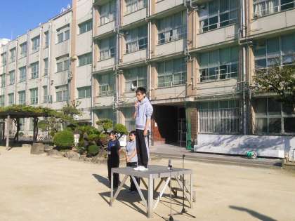 今週の15日(木)が、最終日になりますが、児童朝会のある今日が、全校児童と対面できる最後のチャンス。
