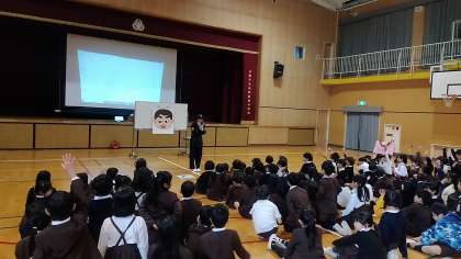 放課後の安全な過ごし方や、知らない人から声を掛けられたときの対処の仕方などを教えていただきました。視聴覚教材を使ったり、寸劇をしてくださったりしたので、子どもたちにもわかりやすかったようです。