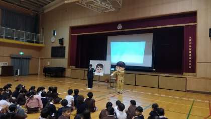 大阪府警察生活安全指導班の皆さんが、1・2年生の子どもたちにお話をしてくださいました。