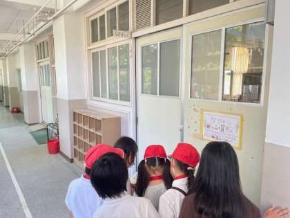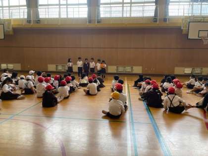 2年生と1年生が学校たんけんをしました。