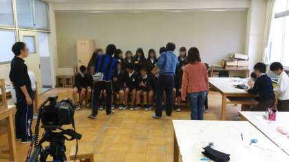 しかし、雨となり、運動場で活動する屋外スポーツクラブは、撮影延期となりました。