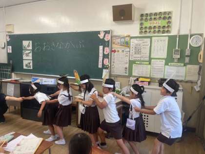 みんな役になりきって、「うんとこしょ どっこいしょ」の声を合わせたり、せりふに合わせて動きをつけたりして、協力することができました。