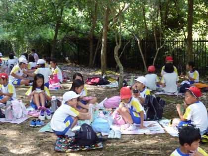 3・4年生は、富田林の錦織公園に遠足に行きました。グループで協力してオリエンテーリングを楽しみました。非常に暑い一日でしたが、ドングリをたくさん拾ったり、大きなすべり台を友だちと一緒に滑ったりして、子どもたちは元気いっぱいに過ごしていました。