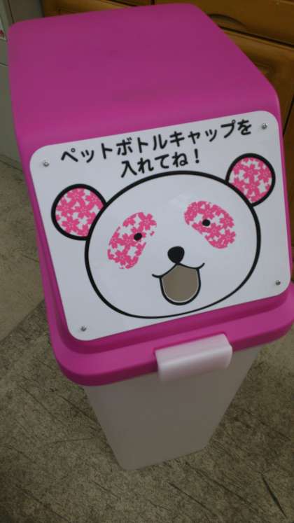 今後の活動のため、エコキャップ回収のイメージキャラクターが付けられた専用の回収BOXをいただくことができました。今後も引き続きご協力お願いします。