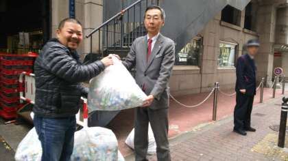 今日は、集約の協力をしてくださる『大丸』の心斎橋店にキャップを搬入することができました。育栄会の会長が運搬のお手伝いをしてくださり、寄付することができました。