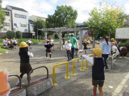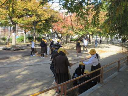 11月18日(月)、地域清掃を行いました。1、2年生は校内を3年生は東加賀屋1公園の周辺を4〜6年生は中加賀屋公園をそれぞれ掃除しました。