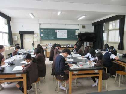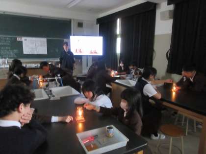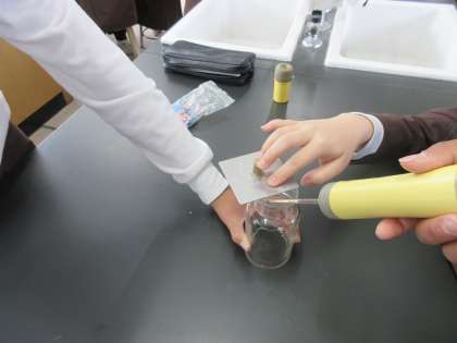 ろうそくにビンをかぶせ線香のけむりの動きを観察したり、ものが燃えるときの空気中の気体にどのような変化があるか観察したりしました。