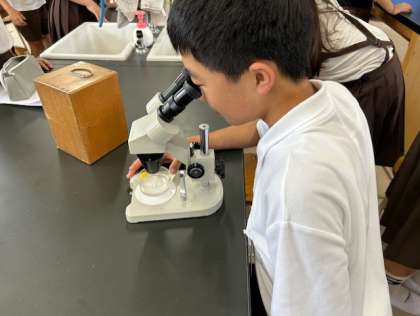 ピントを合わせるのに苦労しましたが、初めての顕微鏡でワクワクしながら観察しました。