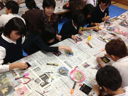 1日目の夜は夕食の後、らでん細工体験に取り組みました。活動の後は、入浴と買い物をしました。部屋に帰ってからは、友だち同士でいろいろな話をして楽しく過ごしたことと思います。