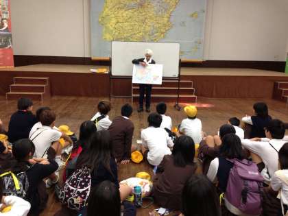 スペイン村に予定通り到着。クラスごとに写真を撮ってから、スペイン人スタッフの方と文化交流をしました。子どもたちはスペインの文化について学びました。