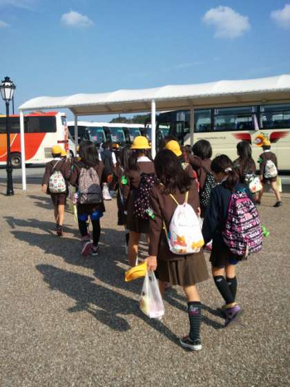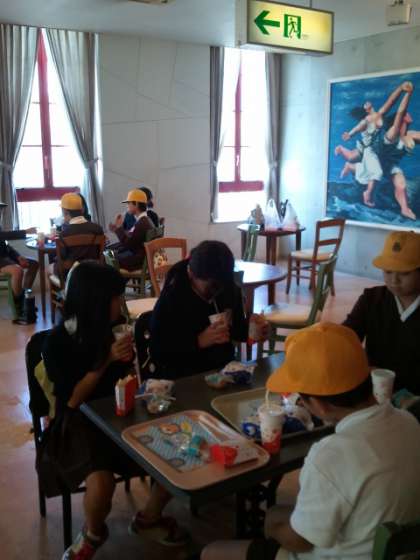 活動班ごとに園内のレストランを選んで、昼食をとりました。スペイン村での活動を終えた子どもたちは、バスに乗り込み、大阪に向かいます。