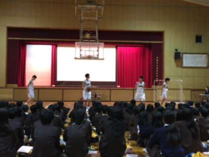 生徒会からの学校紹介、部員たちによる部活動紹介、そして部活動見学と、中学校生活について丁寧に教えてもらいました。笑いも含めた部活動紹介は会場も和み、子ども達も一層楽しみになったと思います。