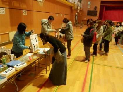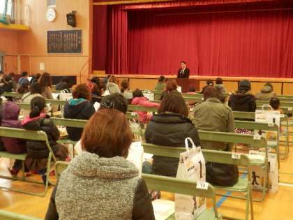 この4月に入学する新1年生の保護者を対象に、新入生保護者説明会を講堂で実施しました。学校長のあいさつの後、学校生活をはじめるに当たっての心構えや準備物などの説明を行いました。会場には、算数教具の出張販売コーナーや、学校徴収金口座をつくるための銀行の臨時窓口なども設けられました。新入生を迎える準備が始まっています。