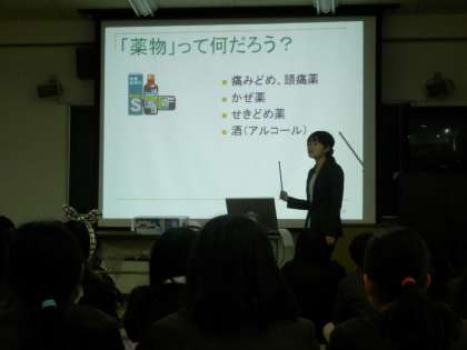 本校の学校薬剤師の先生をお招きして、6年生を対象に薬物乱用防止教室を実施しました。スライドを見ながら、喫煙、飲酒、薬物がどれぐらい危険なものかについて、お話をうかがうことができました。