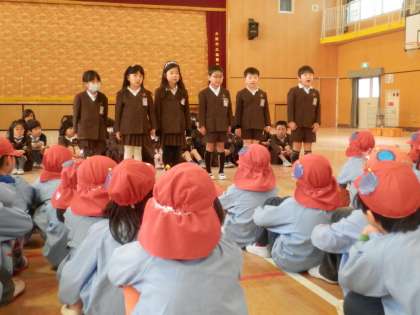 今日、来校した保育所の子どもたちの中には、4月に本校に入学する子どももいます。就学前の子どもたちが小学校入学へスムーズにつながるよう、これからも幼保小連携を進めていきたいと思います。