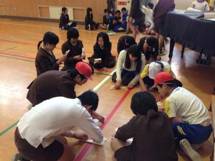 卒業式を2週間後に控えた6年生は、学年お楽しみ会「かひがしピック」をして仲間との楽しい時間を過ごしました。毎年この時期に実施しており、今年で3年目になります。スポーツ・学習・バラエティの3部門に分かれて、学級対抗で競い合って楽しみました。バラエティ部門の「紙飛行機飛ばし」では、より遠くに飛ぶ紙飛行機を、グループで話し合いながら一生懸命作っていました。小学校生活のよい思い出になったことと思います。