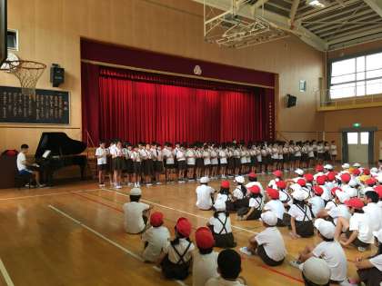 6年生は「詩の群読」、1年生は「合唱」、そして5年生は「リコーダー演奏」でした。