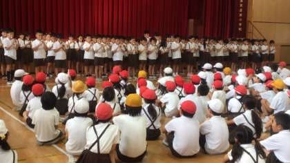 7月6日(木)の集会では3年生による「学年発表会」が行われました。