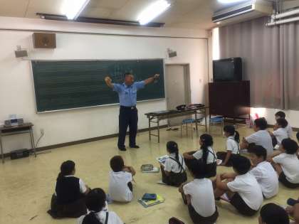 13日(水)住之江警察の方に来ていただいて、出前授業をしていただきました。4年生は社会科で安全なくらしを守る仕事の学習があります。消防署の仕事、警察署の仕事を学びます。