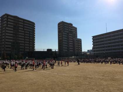 寒さを乗り切る体力を身につけるため、20分休憩に全校児童で運動場を走っています。