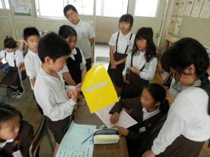 児童集会の時間に、2週間後に迫った「子どもまつり」に向けてのたてわり班ごとの話し合いを行いました。たてわり班の活動教室に各学年の子どもたちが集まり、まつりを回るときのグループとリーダー・副リーダーを話し合って決めました。