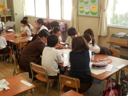 児童集会の時間に「子どもまつり」に向けた、たてわり班ごとの2回目の話し合いを行いました。今日はグループに分かれて、まつり当日に、どの学級のコーナーをどう回るかについて、みんなで話し合って決めていました。