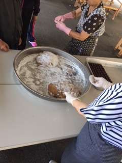 餅つきが終わり、美味しいお餅ができあがりました。食べている顔もすごくほころんでいました。